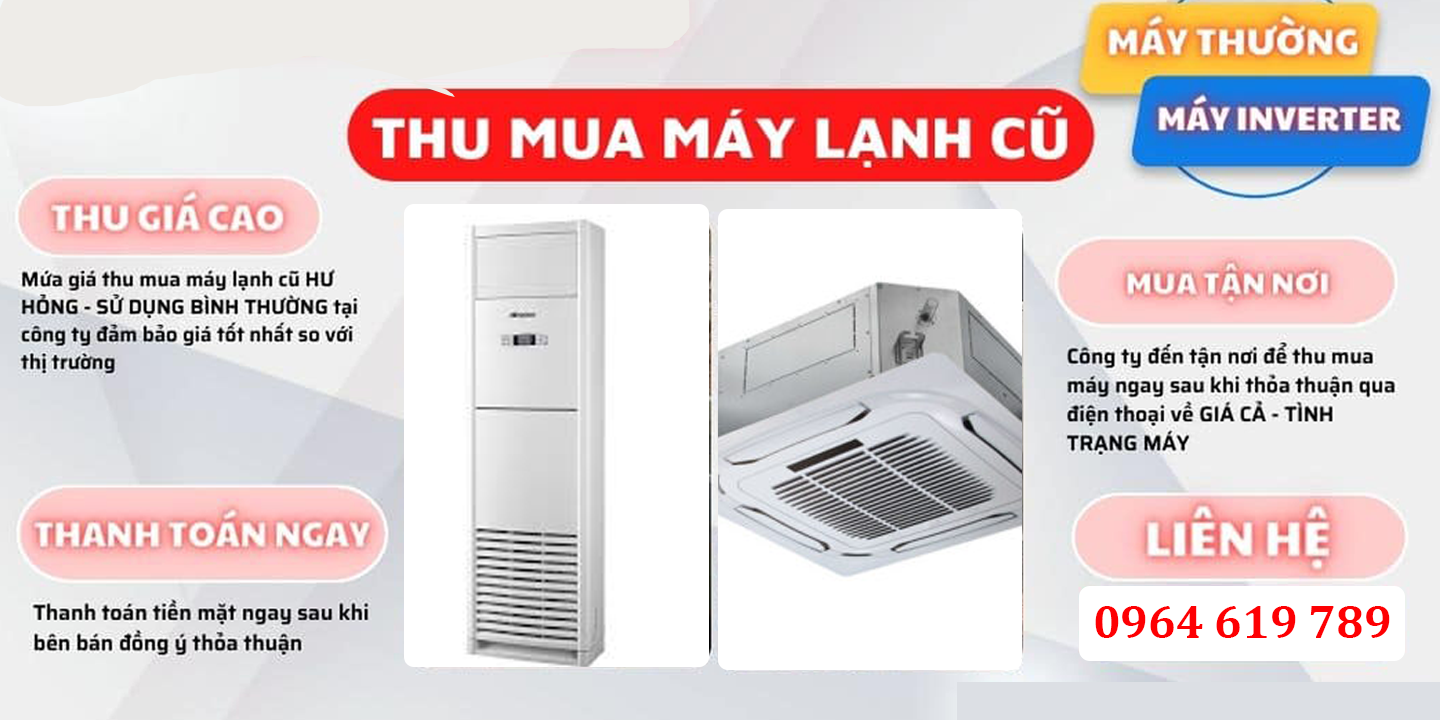 Qúi khách đang muốn thanh lý máy lạnh hư, máy lạnh cũ, máy chiller, máy lạnh công nghiệp không còn nhu cầu sử dụng để nâng cấp thay thế bằng máy mới. Hãy gọi ngay Phú An Gia hotline: 0964 619 789 - 0274 626 8695 chúng tôi Thu mua máy lạnh công nghiệp, máy chiller, hệ thống lạnh công nghiệp, máy lạnh dân dụng, máy lạnh âm trần, máy lạnh áp trần các loại, vv.... Cơ Điện Lạnh Phú An Gia thu mua uy tin, giá cao, đến đúng hẹn. Có % hoa hồng cho người liên hệ, người giới thiệu.